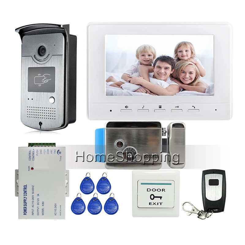 Beste beoordelingen van - FREE SHIPPING 7\ Screen Video Door Phone Video Intercom System + 1 Monitor + RFID Access Doorbell Camera + Electric Lock Beste aanbiedingen