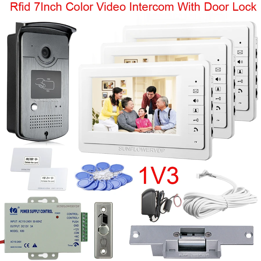 Beste prijs - 1V3 Rfid Cards Camera Intercoms For A Private House 7Inches Color Monitor Video Call With Electric Strike Door Lock Full Kit