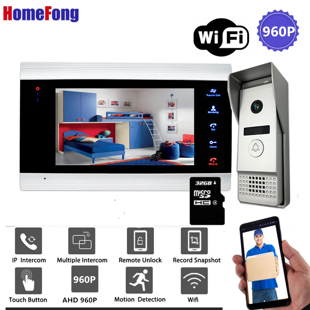 [Wide Angle 960P]Homefong 7\ Wireless Video Door Phone Wifi Video Doorbell Door Intercom With Camera 130 Degree Record Unlock