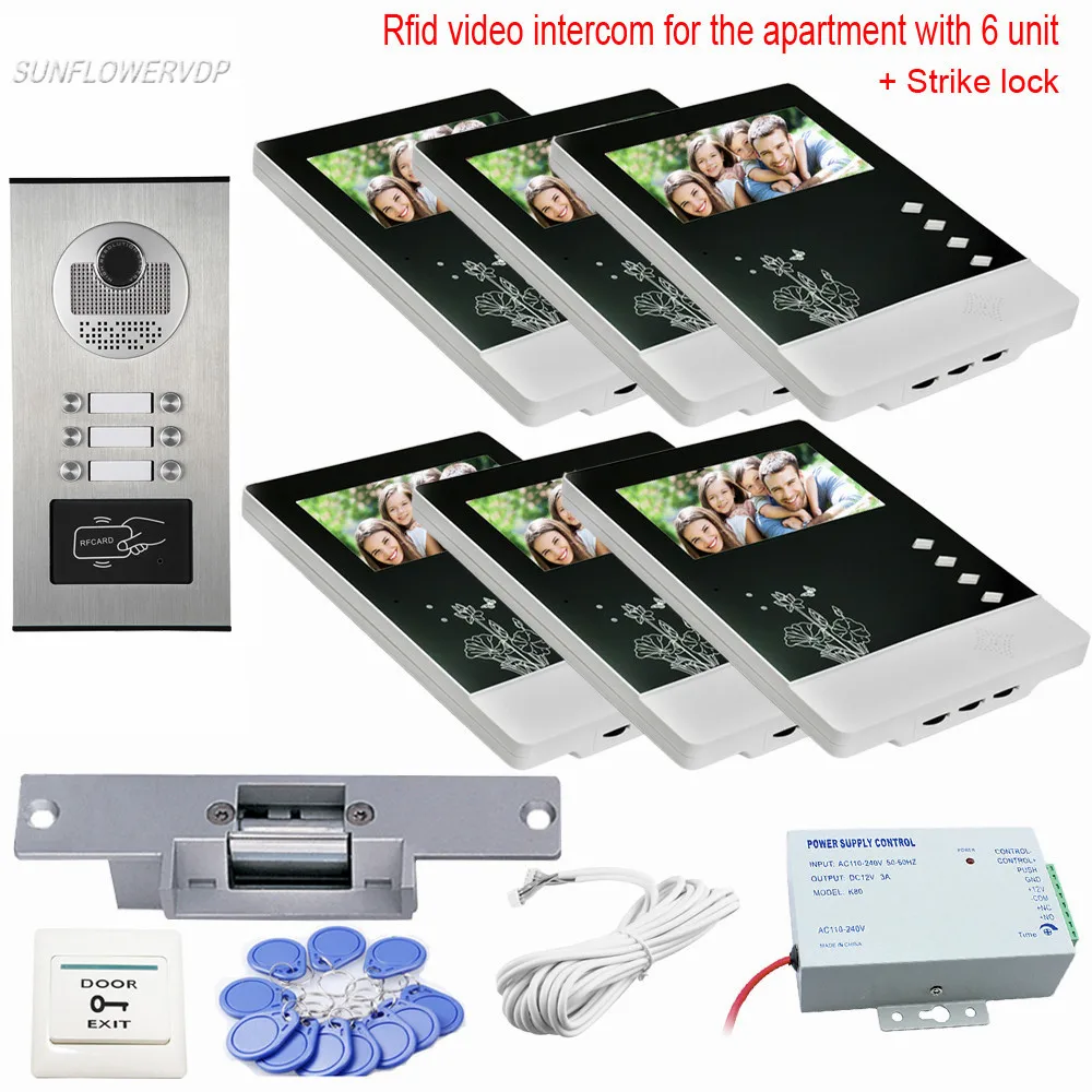 ^ Goedkoop 6 Apartments Rfid Interphone Video Intercom With Lock Door Phone 4.3\ Color Monitors CCD Door bell With Camera Intercom For Home Kopen