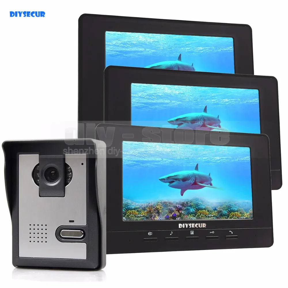 Goedkoop online - DIYSECUR 7inch Video Intercom Video Door Phone Doorbell IR Night Vision Camera 3 Monitors 800 x 480 Black ^ Goedkoop