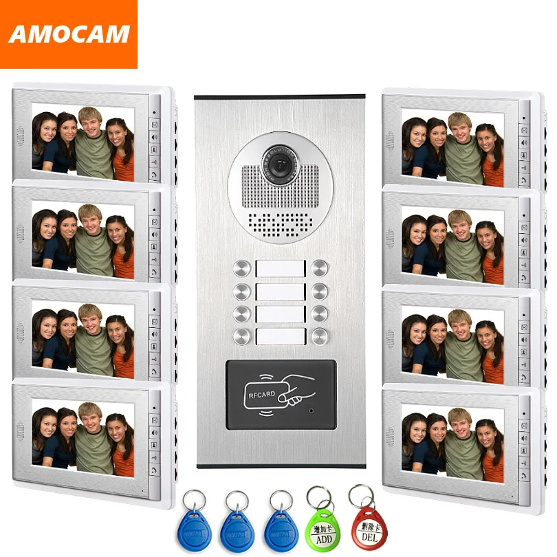 Korting - 8 Units Video Intercom Apartment Door Phone System HD Camera 7\ Monitor video Doorbell with 5-RFID Card Unlock for 8 Household Beste aanbiedingen