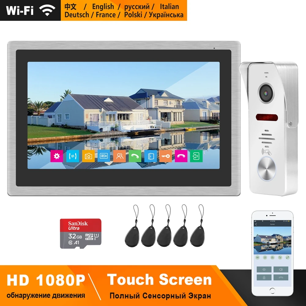 Beste prijs HomeFong Wireless Wifi Smart Video Door Phone Intercom System 10 inch Touch Screen HD 1080P Doorbell Camera Support Swiping Card Goedkoop krijgen