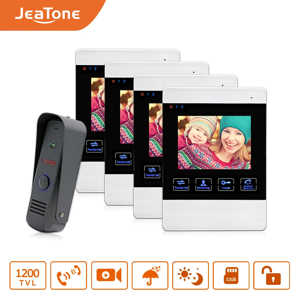 Beste beoordelingen van - JeaTone 4\ LCD Screen Touch Button Monitor Video Doorbell Intercom System Waterproof IR Night Camera Two-way Intercom Kit 4V1 Beste prijs