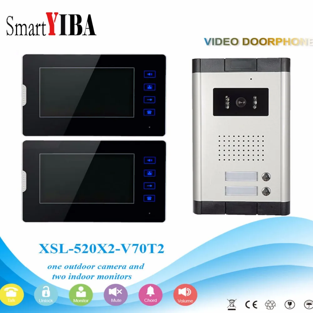 Speciale aanbiedingen SmartYIBA 2 Units Apartment Intercom System Video Door Phone Door Intercom Aluminum Alloy Camera 7\Inch Monitor Video Doorbell Prijsvergelijkingen voor
