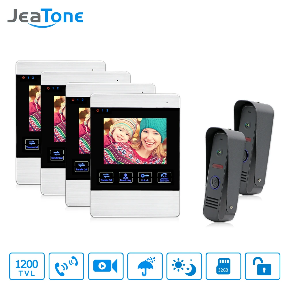 Beste prijs - JeaTone Video Door Phone Wired 4\ Dual Communication Doorbell Monitor IR Night Vision Camera Video Intercom Home Unit 1200TVL