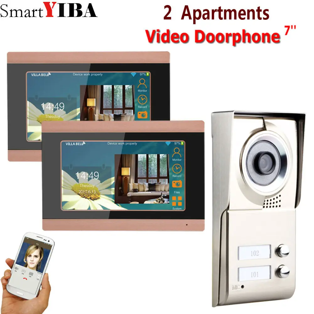 Beste prijs SmartYIBA 7inch Record wireless Wifi 2 Apartments Video Door Phone Intercom System IR-CUT HD 1000TVL Camera Doorbell Camera Beste prijs