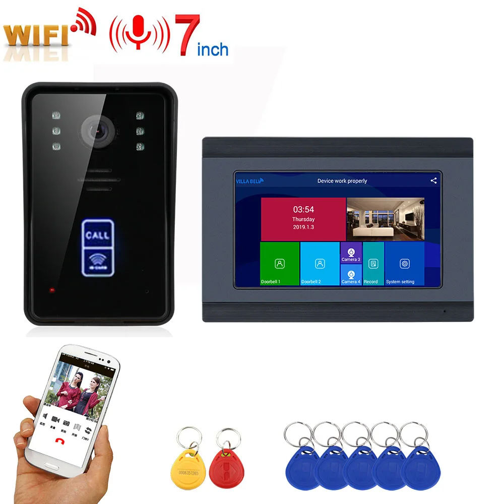 ^ Goedkoop - 7inch Record Wireless Wifi RFID Video Door Phone Doorbell Intercom Entry System with IR-CUT 1080P Wired Camera Night Vision
