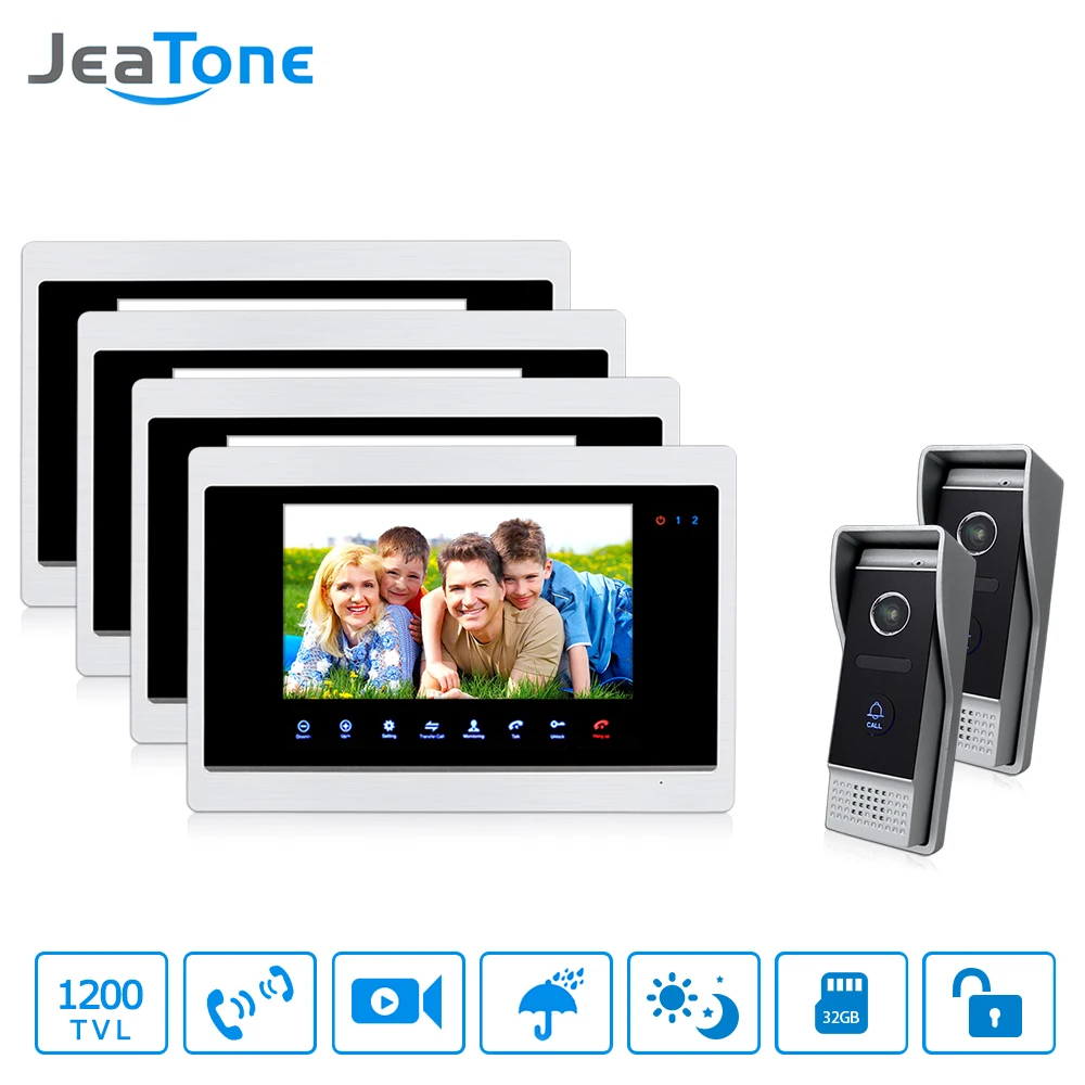Krijg de beste prijs voor - JeaTone 7 inch LCD Screen 4 Monitors 2 Cameras Video Door Phone Doorbell Intercom Hands-free Answering Home Intercom Security Ki ^ Goedkoop