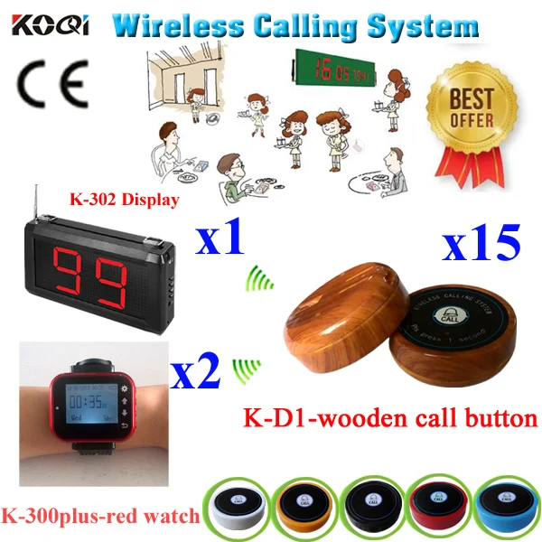 ^ Goedkoop Restaurant Waiter Call Pager System Panel Display Watches And Button For Customer Use(1 display+ 2 watch +15 call button) Goedkoopste