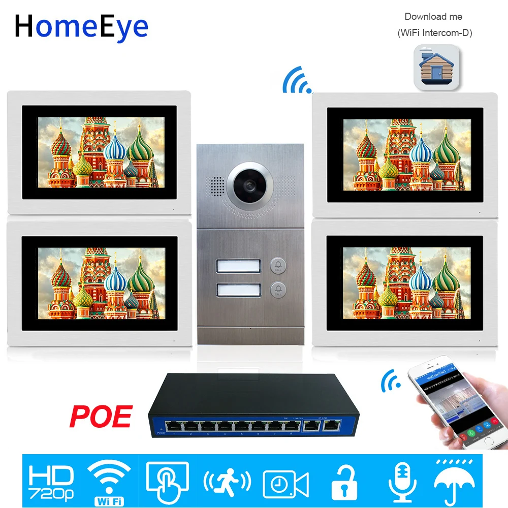 Kopen - 720P HD WiFi IP Video Door Phone Video Intercom 2-Apartments Door Access Control System Free iOS/Android APP Remote Unlock POE Speciale aanbiedingen