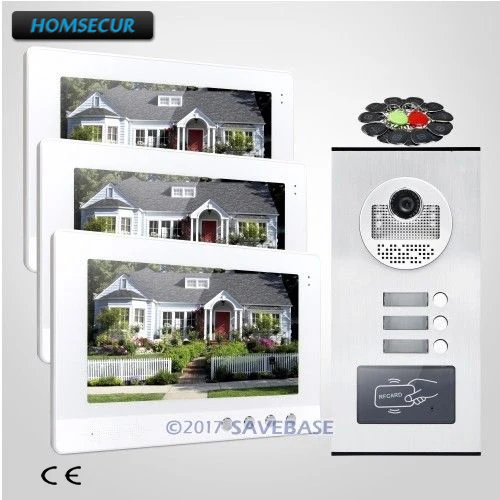Speciale prijs HOMSECUR 10.1\ LCD Video Door Entry Intercom Kit with Outdoor Monitoring for 3 Apartment Goedkoop krijgen