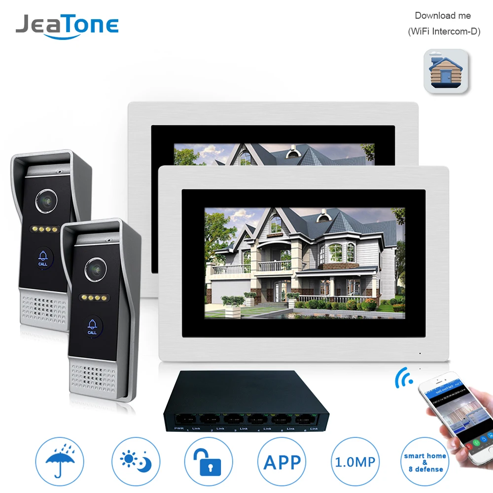 Korting - 7'' WIFI IP Video Door Phone Intercom Wireless Door Bell Speaker Access Control System Touch Screen Motion Detection 2 Apartment Beste aanbiedingen