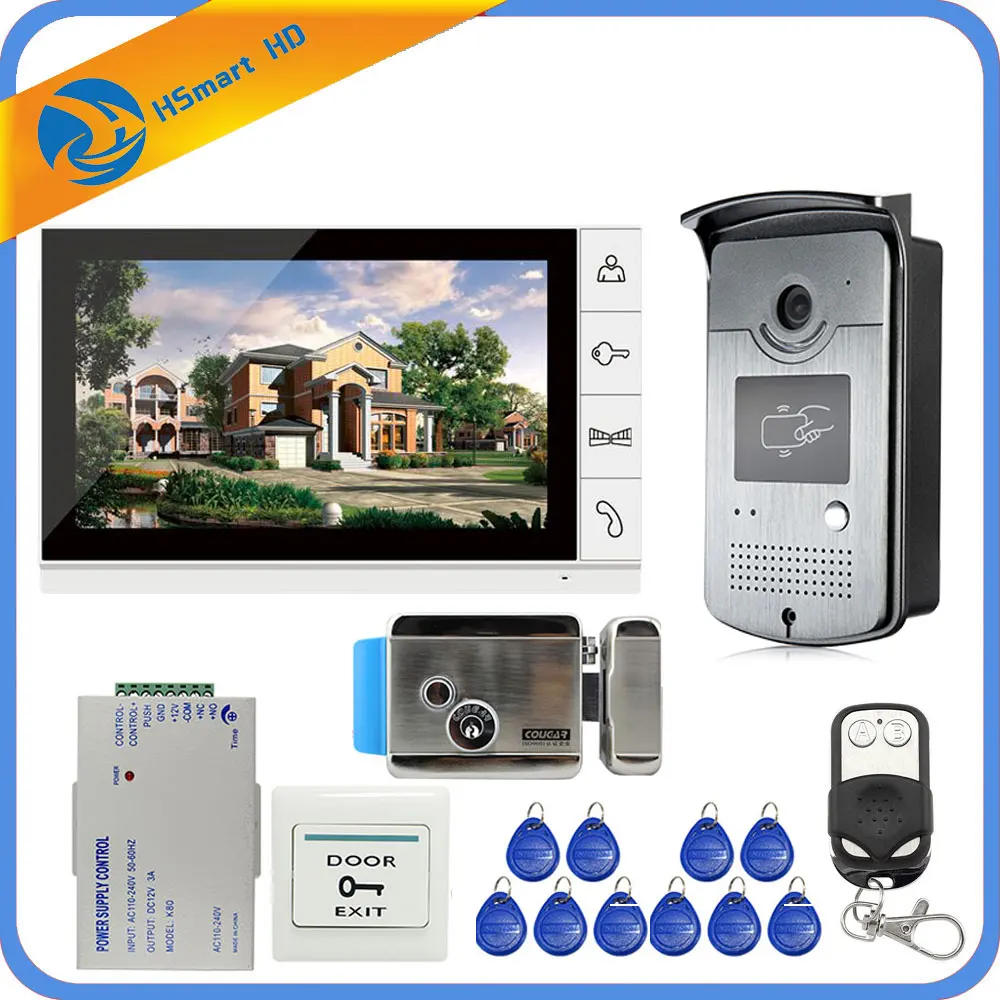 Vergelijk prijzen voor - New Wired 9 inch Video Door Phone Intercom Entry System 1 Monitor + 1 RFID Access IR 700TVL Camera + Electric Control Door Lock Beste aanbiedingen