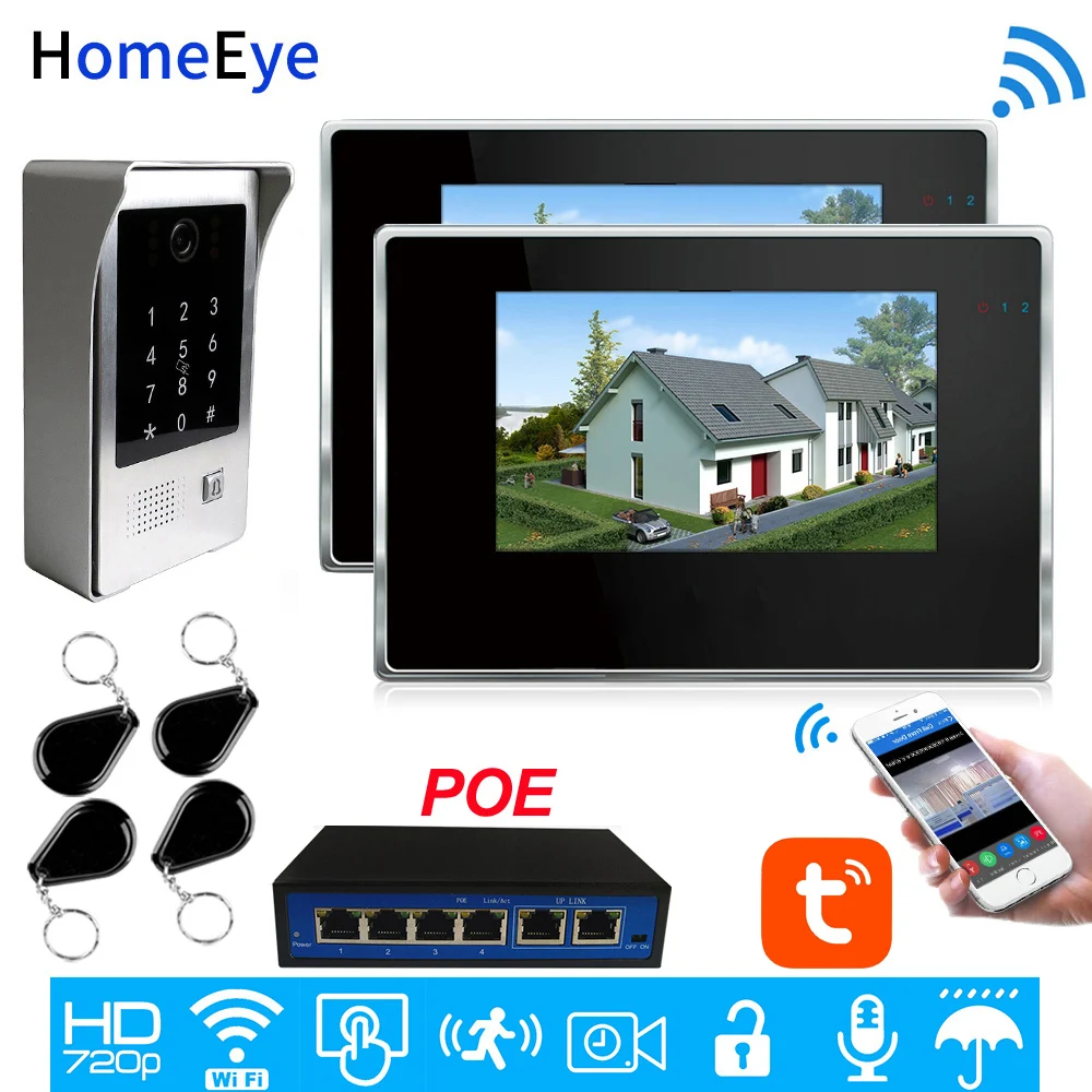 Wie verkoopt - TuyaSmart APP IP Video Intercom POE System 720P Wifi Video Door Phone 7'' Touch Screen Password/IC Card Security Access Control Beste aanbiedingen