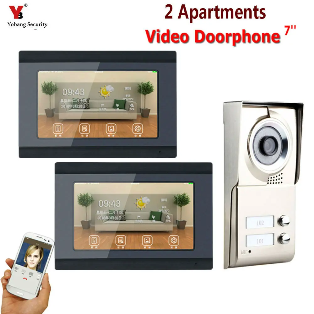 Beste prijs - 7inch Record Wired Wifi 2 Apartment/Family Video Door Phone Intercom System RFID IR-CUT HD 1000TVL Camera Support 16GB TF card