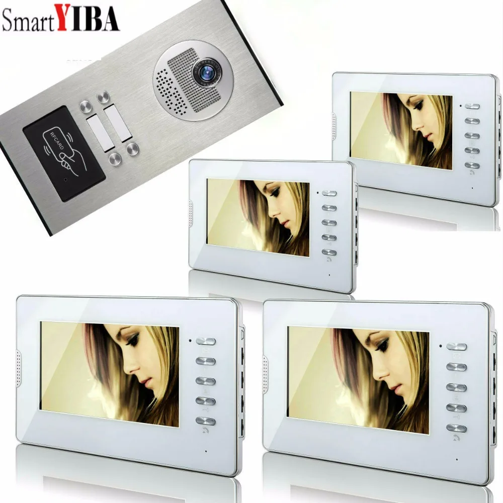^ Goedkoop SmartYIBA White 7 Inches Color Wired Video Doorbell Door Chime,Rainproof Door Phone For 4 Units Villa Apartment Intercom Koopje