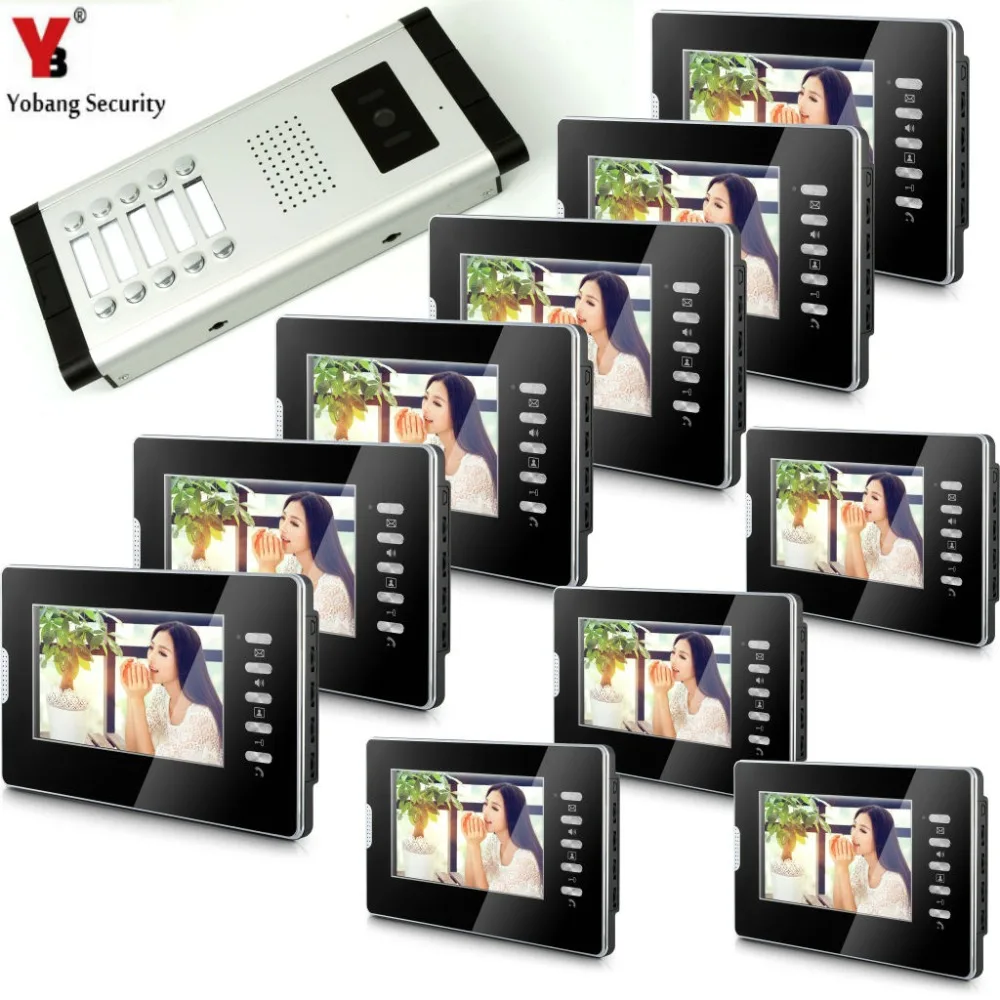 Beste - YobangSecurity 7 Inches Color Video Doorbell Door Chime,Rainproof Door Phone Night Vision For 10 Units Villa Apartment Intercom ^ Goedkoop