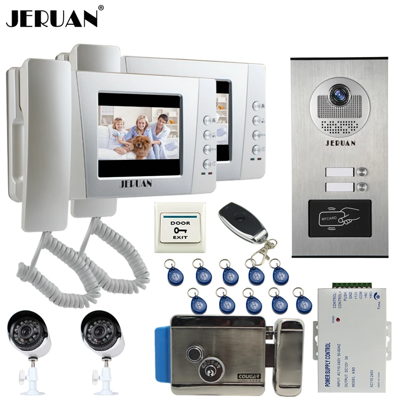 Speciale aanbiedingen JERUAN 4.3`` LCD Video Door Phone Intercom System kit 2 Monitor RFID Access Camera for 2 Household Apartment + 2 Analog Camera Online