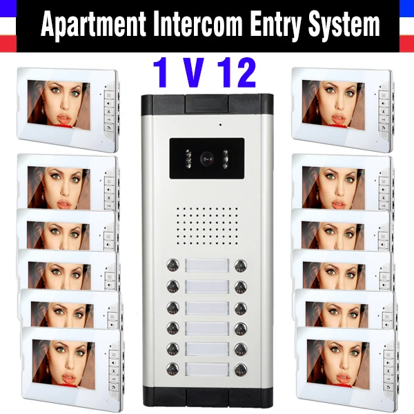 Speciale prijs 12 Units Apartment Intercom System 7 Inch Monitor Video Intercom Doorbell Door Phone Intercom Video Door Camera kits Wie verkoopt de goedkoopste