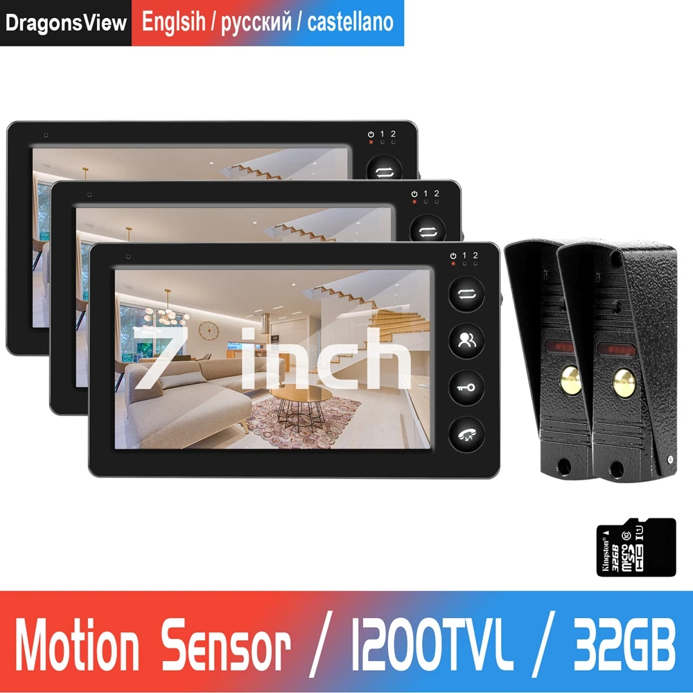 Goedkoopste online - 7 Inch Wired Video Door Phone 3 monitor with 2 Doorbell camera Home Video Doorbell Support Motion Detection Record Door Intercom Beste aanbiedingen