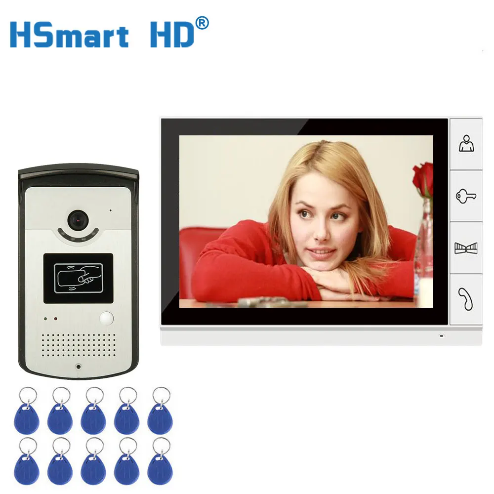Kopen - 9'' TFT LCD Wired Video Door Phone Visual Video Intercom Speakerphone Intercom System With Waterproof Outdoor IR RFID Camera Beste prijs