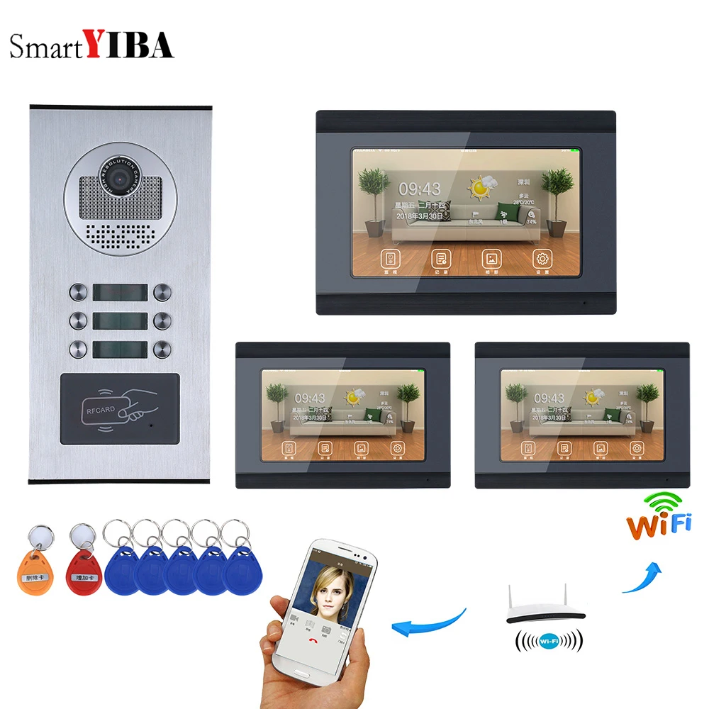 Beste prijs - SmartYIBA Video Intercom 7 Inch Wifi Wireless Video Door Phone Doorbell Intercom System Android IOS APP For 3 Units Apartment