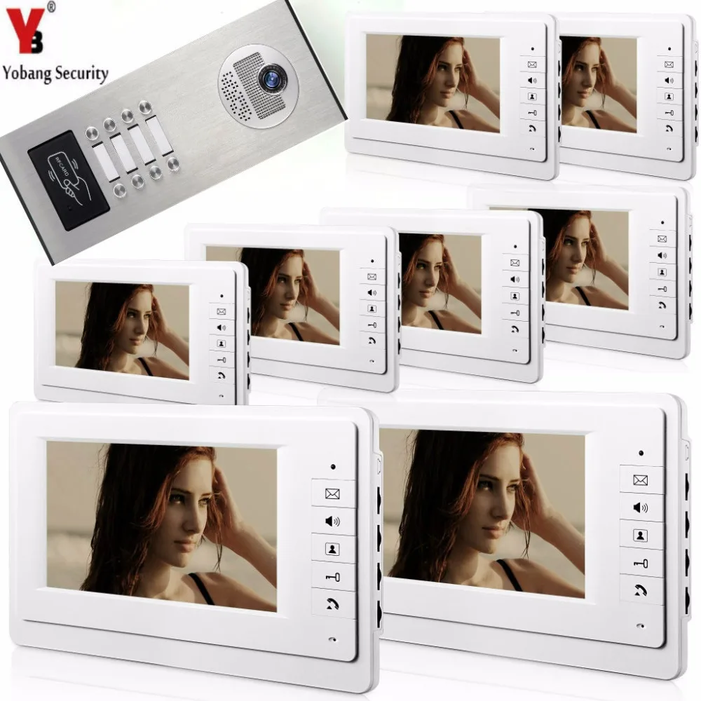 Beste prijs Yobang Security 2 to 12 Units 7\Apartment Building Intercom System RFID Unlock Building Home Video Door Phone Bell Intercom Kits Korting