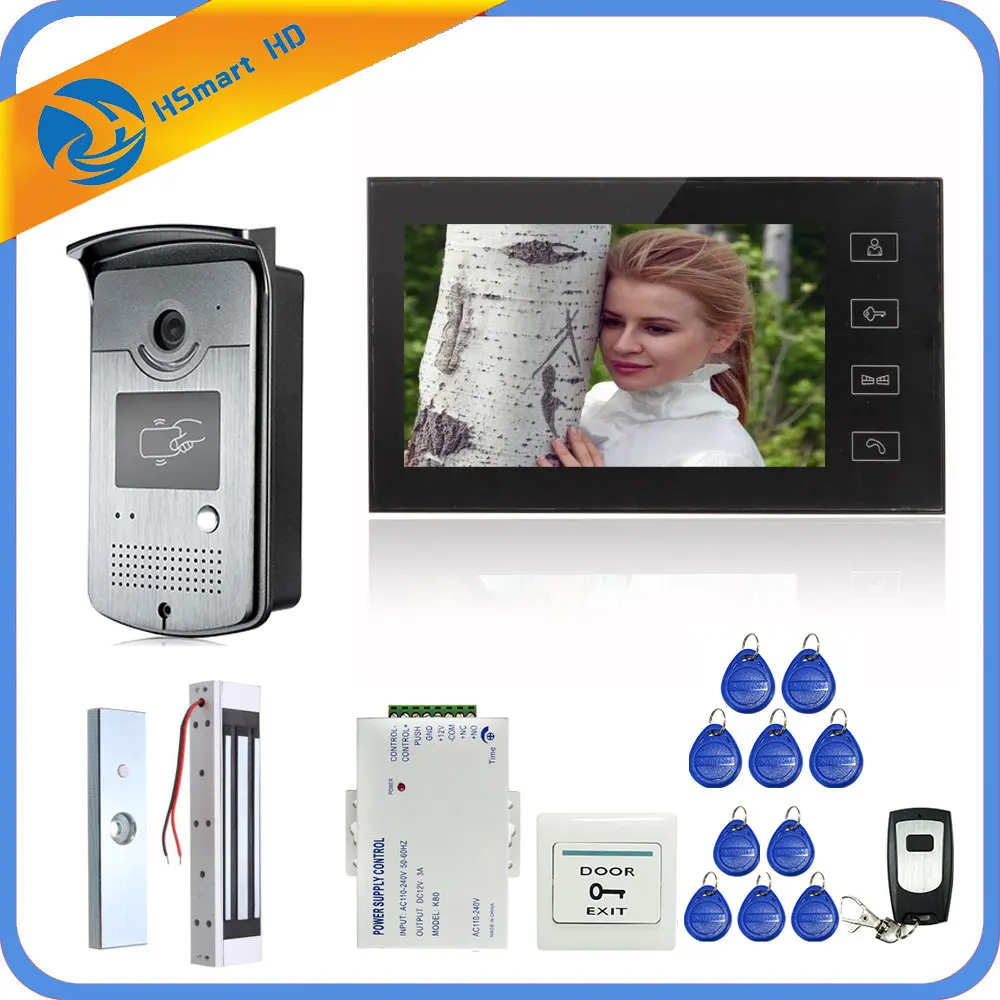 Prijsvergelijkingen - 7 inch Touch Screen LCD Color Video Door Phone Intercom Entry System 1 Monitor+1 RFID Access HD Camera+Electric Magnetic Lock ^ Goedkoop