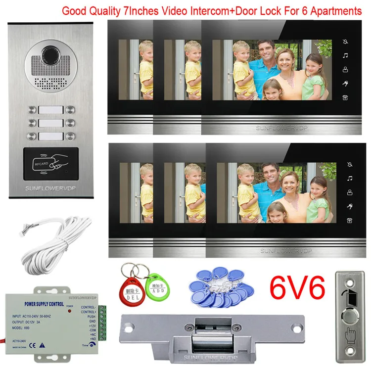 Vergelijk prijzen - Intercom With Camera For Apartment 2/3/4/6 Multi Units Video Door Bell 7\ Color Monitor Intercom Home + Electric Door Lock Kit ^ Goedkoop