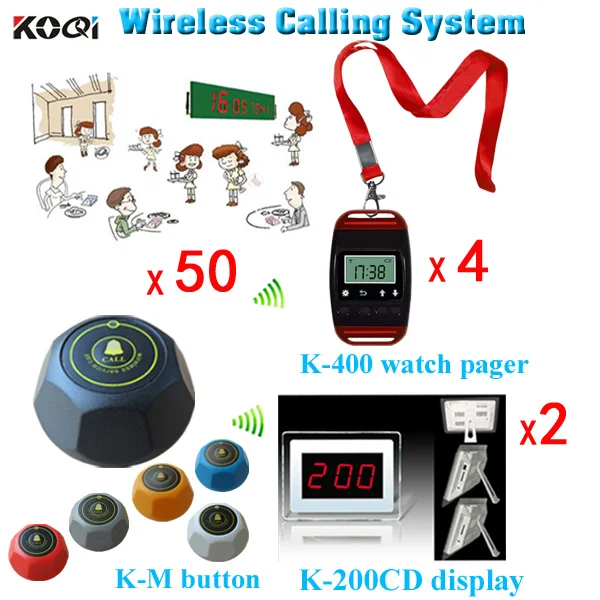 Speciale prijs Wireless Waiter Call System KOQI Electronic 2 pcs Panel Receivers + 4 pcs Waiter Watches + 50 Call Buttons Beoordelingen