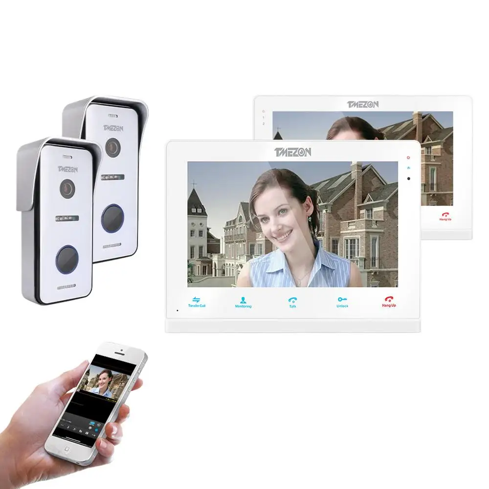 TMEZON Wireless/Wifi Smart IP Video Doorbell Intercom System ,10 Inch+7 Inch Screen Monitor with 2x720P Wired Door Phone Camera