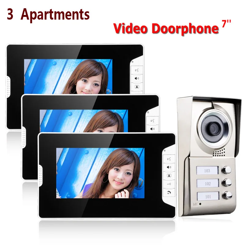 Beste aanbiedingen - 7inch TFT 3 Apartments Video Door Phone Intercom System IR-CUT HD 1000TVL Camera Doorbell Camera with 3 button 3 Monitor Waterpr
