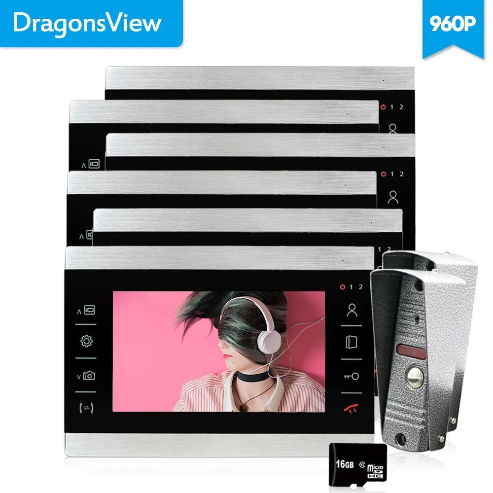Dragonsview 7 Inch 960P Video Door Phone Doorbell Intercom with Video Camera Waterproof 16GB SD card Recording Motion Detection