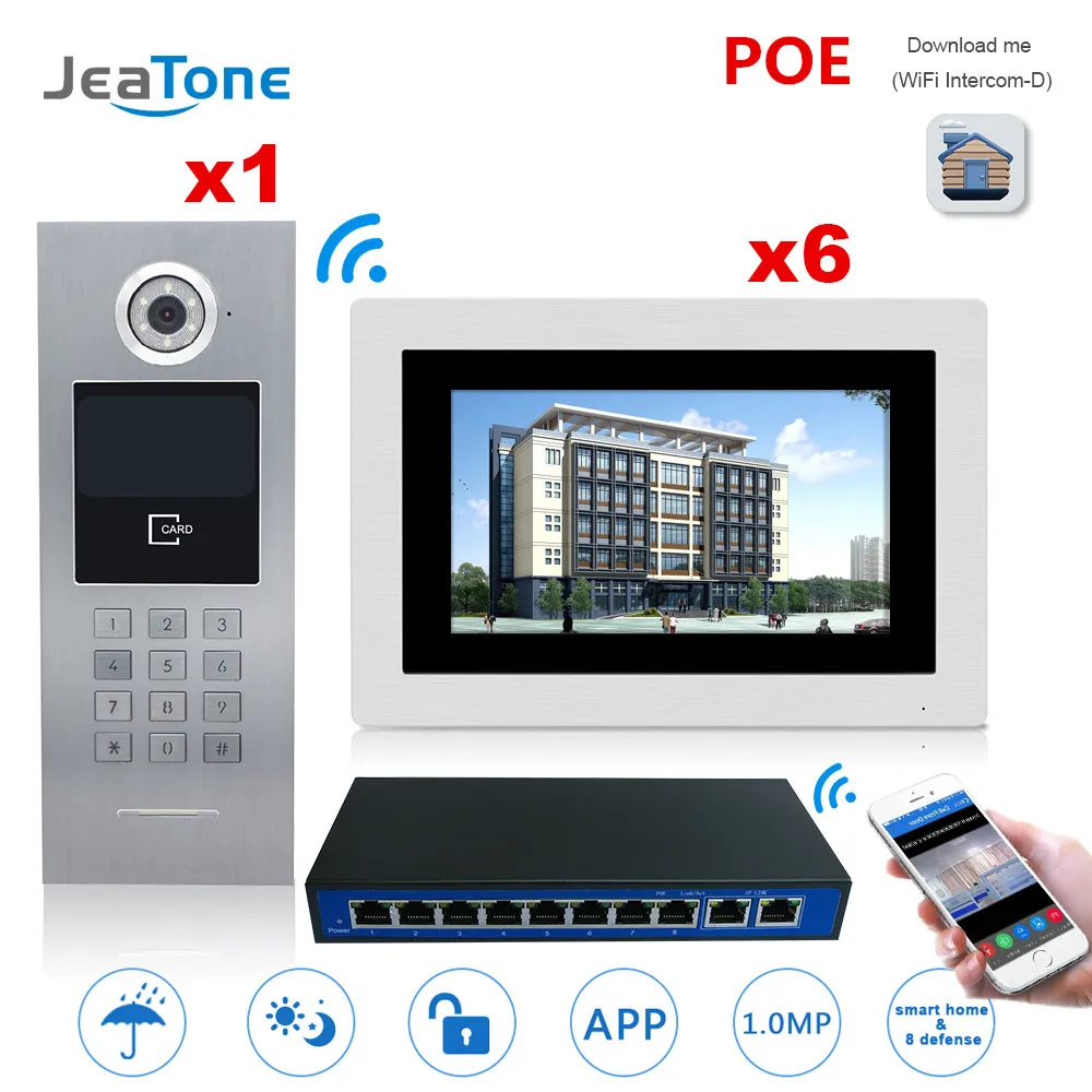 Goedkoopste - 7'' Touch Screen WIFI IP Video Door Phone Intercom +POE Switch 6 Floors Building Access Control System Support Password/IC Card Beste aanbiedingen