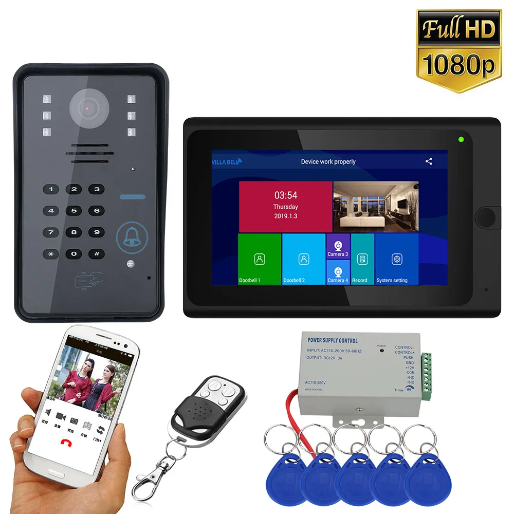 Te koop - 7inch Wireless Wifi RFID Password Video Door Phone Doorbell Intercom Entry System with Wired IR-CUT 1080P Wired Camera Night Vis Beste aanbiedingen