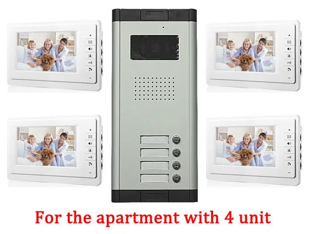 Beste prijs - Apartment 4 Unit Intercom Entry System Wired Video Door Phone Audio Visual IR Camera doorphone monitor Speakerphone intercom
