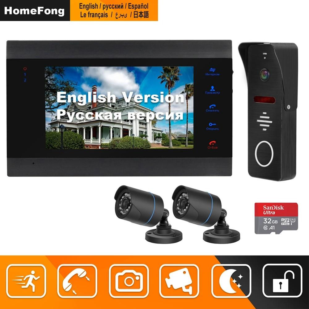 Beste prijs HomeFong Wired Video Doorbell for Home Intercom with 2 Cameras Support Infrared Night Vision Motion Sensor Video Intercom System Wie verkoopt Sheap