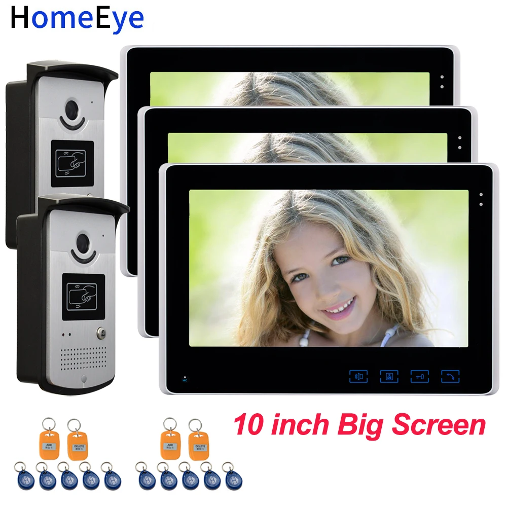Beste prijs Video Door Phone Video Intercom Home Access Control System 10'' big Screen+RFID Card Reader 1200TVL Waterproof Touch Button OSD Goedkoopste