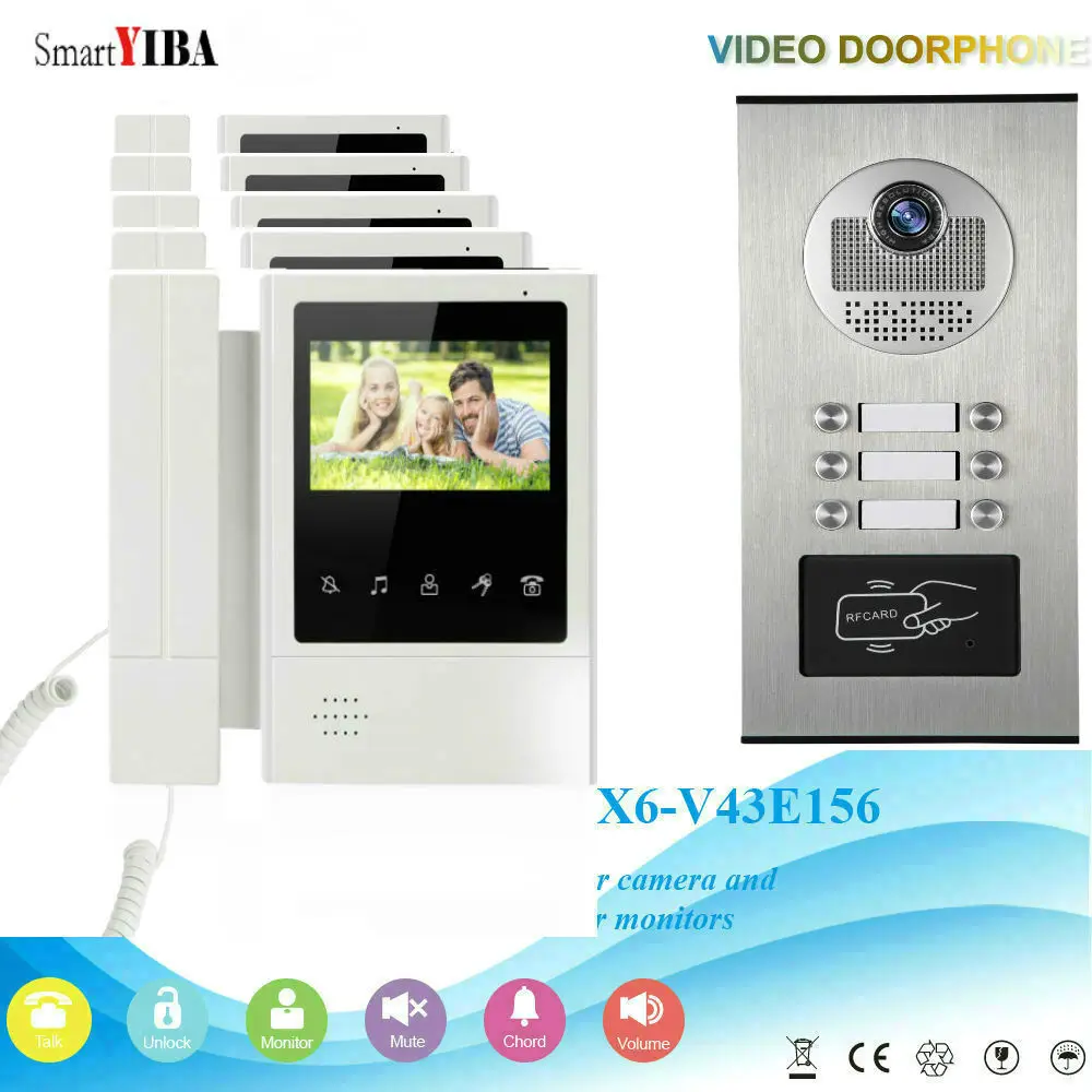 ^ Goedkoop - SmartYIBA 5 Units 4.3'' Color Video Door Phone Intercom Camera Villa Building Video Intercom Kits With RFID Access Camera