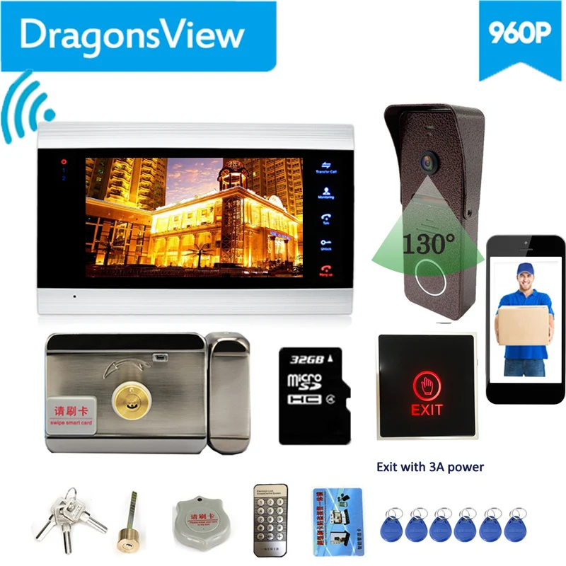 Speciale aanbiedingen - 【Wifi Intercom With Lock 】Dragonsview 7 Inch Wifi Video Door Phone Intercom System Wirelesss Doorbell Camera Electronic Lock