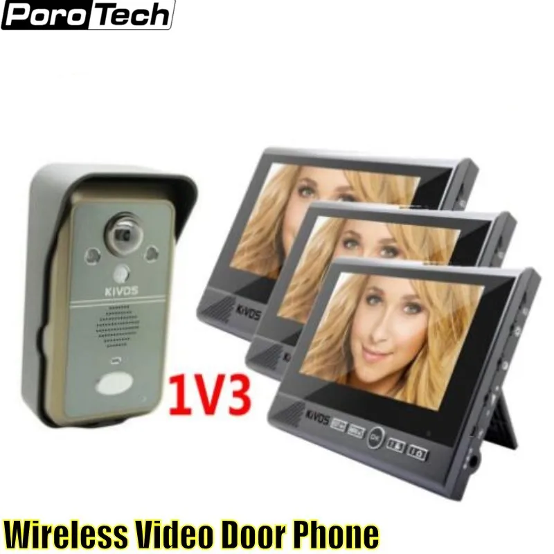 Speciale prijs - KDB702 1v3 wireless video intercom systerm 7 inch Monitor smart Video Doorbell Door Phone with Night Vision 2 Way Audio