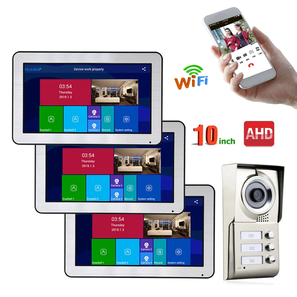 Speciale prijs MAOTEWANG Wired Video Intercom Systems 3 apartments 10 inch Wifi Video Door Phone System IR-CUT HD 720P Doorbell Camera Waar kan ik kopen