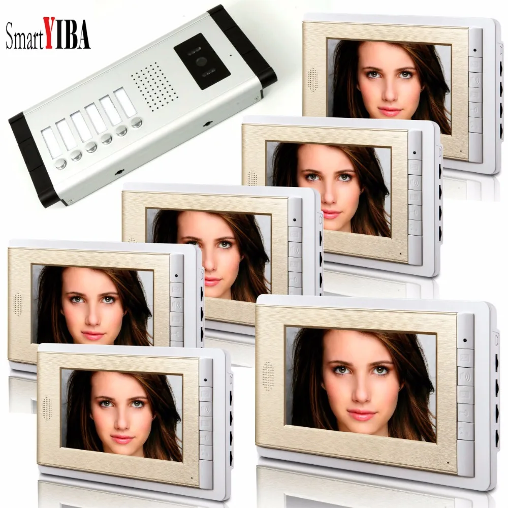 Beste aanbiedingen SmartYIBA 7\ Video Door Camera kits Wired Home Video Intercom 6pcs Color Monitors Interphone For 6 Units Apartment Hotel Rooms Beoordelingen
