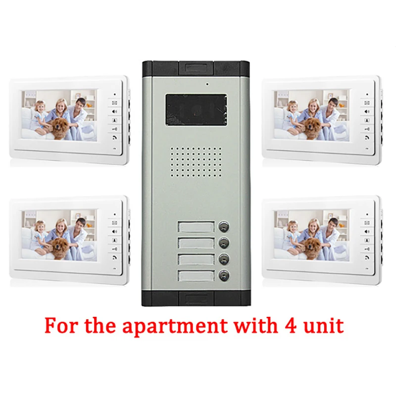 Apartment 4 Unit Intercom Entry System Wired Video Door Phone Audio Visual IR Camera doorphone monitor Speakerphone intercom
