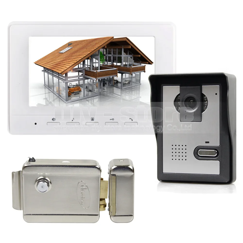DIYSECUR Electric Lock 7inch Video Intercom Video Door Phone Doorbell 1 Camera 1 Monitor for Home / Office Security System White