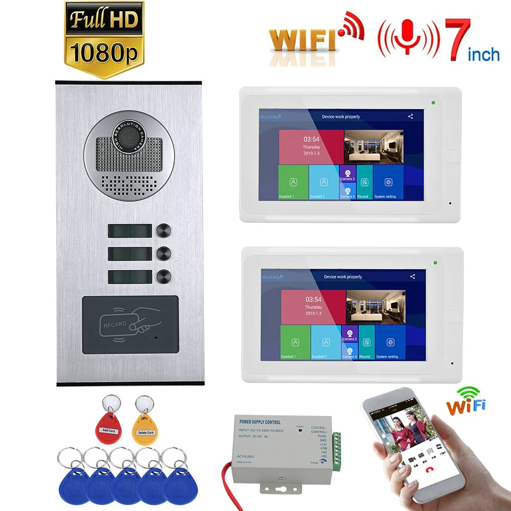 Lage kosten - 7inch Record Wired Wifi Video Intercom 2 Apartments with 2 Family RFID Video Doorphone System IR-CUT HD 1080P Doorbell Camera ^ Goedkoop