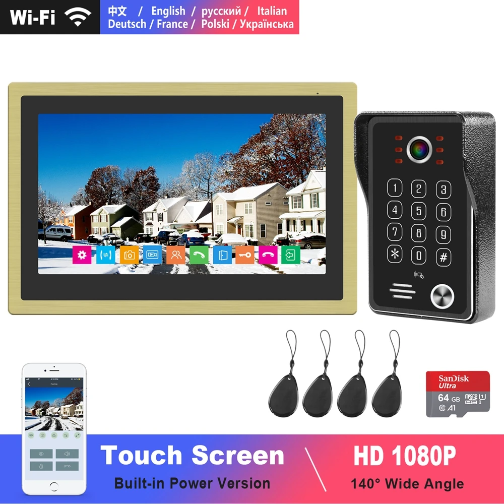 Wie Verkoopt de goedkoopste online - Diagonsview Video Intercom WIFI Doorbell 10 inch Touch Screen Built-in Power 1080P Keypad Call Panel Video Door Phone for Home ^ Goedkoop