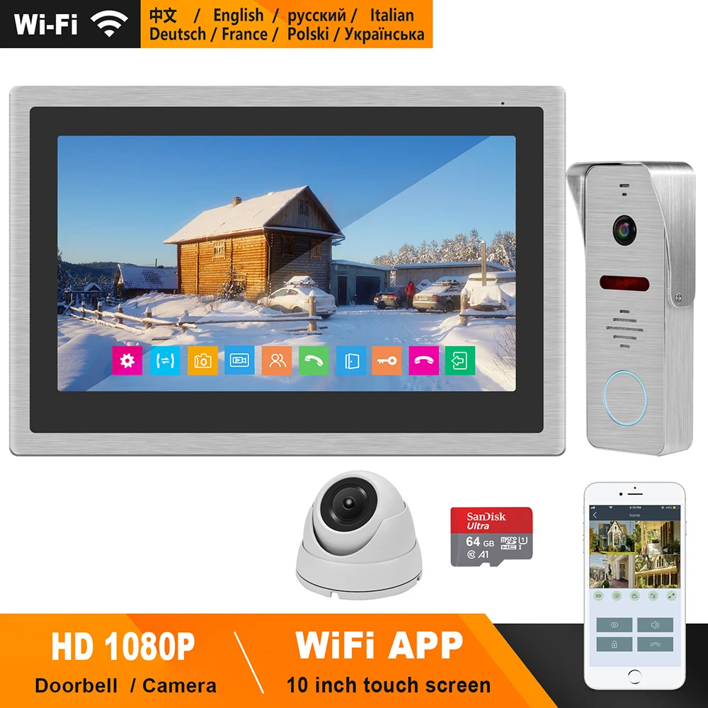 HomeFong WIFI Video Intercom System Wireless Video Door Phone 10 inch Touch Screen Monitor Dome Camera HD1080P Doorbell Intercom