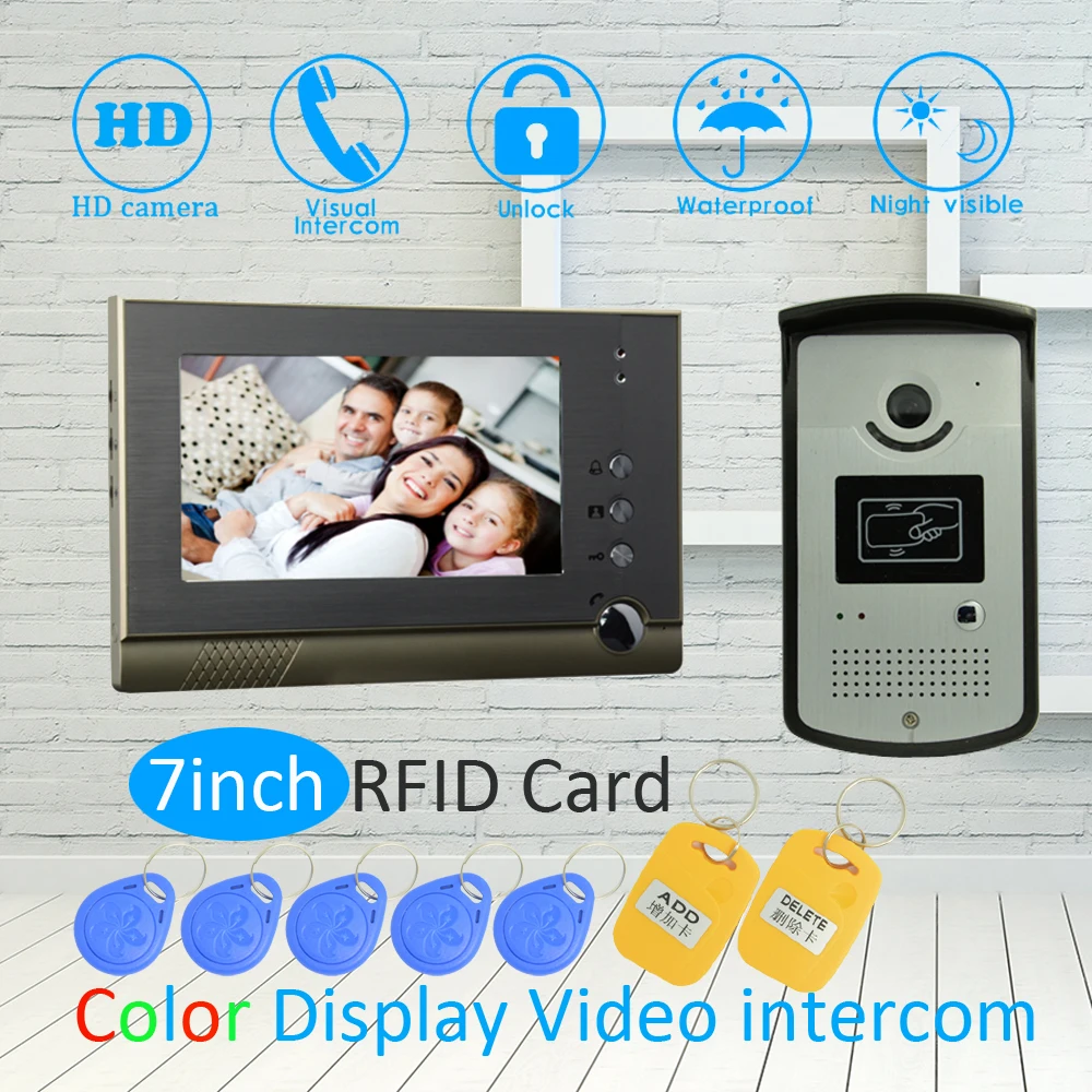 Beste prijs (1 SET) Aluminium 7 Inch LCD Monitor RFID Unlock Function HD Night Vision IR Camera Video Door Phone System Doorbell Intercom Online
